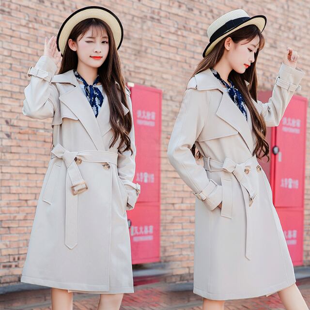 ウエストベルトを締めて着やせ+女性らしいスタイルに◎