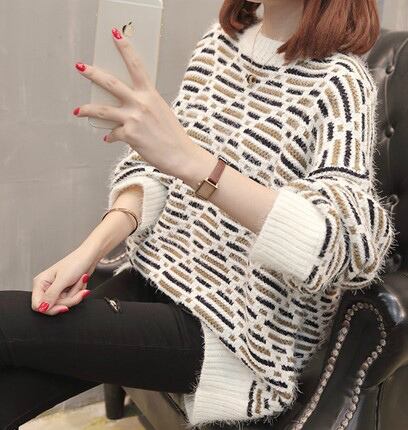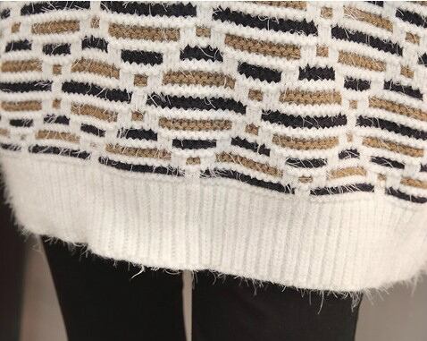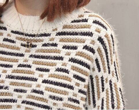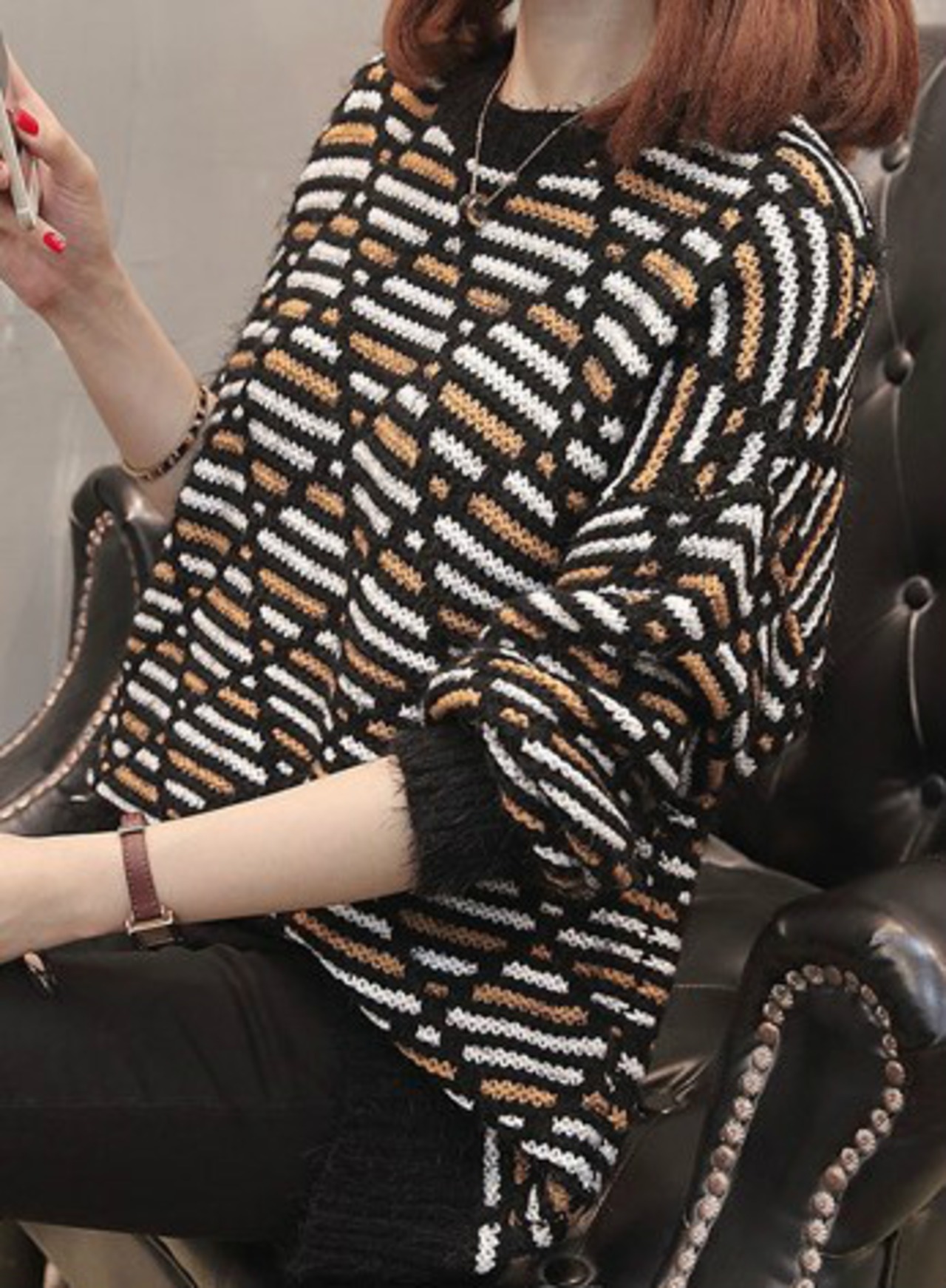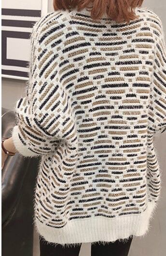 ●落ち着いた配色の幾何学模様がポイント!ドルマンスリーブニット●
