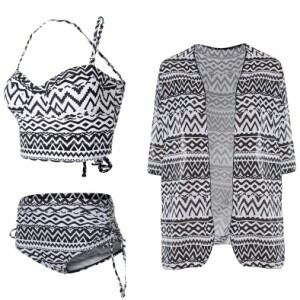 水着 ビキニ 3点セット ビスチェ ハイウエスト レースアップ カーディガン タンキニビキニ タンキニ カバーアップ ビスチェビキニ ホルターネック レトロロマンティック クロップトトップス サーフガール 毎日ビキニ ボヘミアン レトロ 大胆 柄 ビーチ | セリエプ