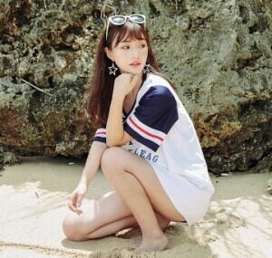 ロンTタイプのカバーアップ付タンキニビキニです。