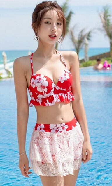 水着 3点セット タンキニビキニ タンキニ ビスチェビキニ フリルビキニ フレアビキニ ホルターネック カバーアップ バックスタイル サーフガール 毎日ビキニ スポーツスタイル スポーツモード 大胆 柄 体型カバー リゾートムード 大きいサイズ レース 海 | セリエプ