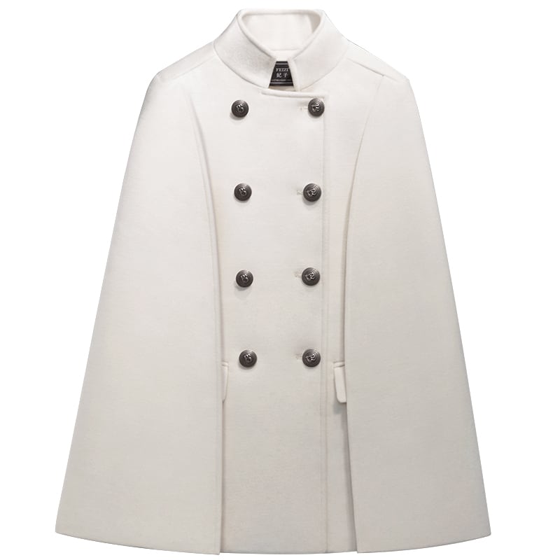 ケープコート ミディアム丈 袖コンシャス シンプル 無地 ウールコート ボタン ケープ マントコート ポンチョコート ダブルブレスト おしゃレディ クラシカル レトロ とろみ ブラウン メンズライク マニッシュ エレガント 上品 大きいサイズ | セリエプ